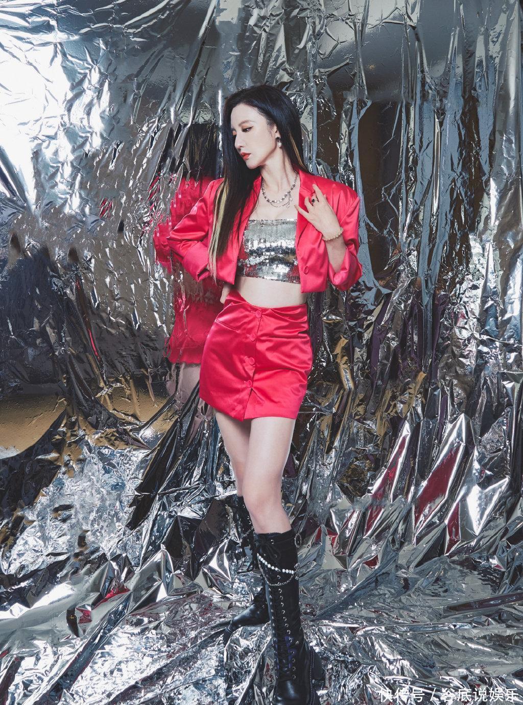 张萌的穿搭总能玩出 “小众混搭风” 的专属时尚感!银色亮片抹胸本是派对焦点单品,她却大胆搭配正红色缎面套装,把 “闪耀性感” 和 “明艳干练” 两种风格强行糅合,这种小众的混搭思路,非但不突兀,反而让她的穿搭充满了辨识度,撩人之余更显时尚品味。