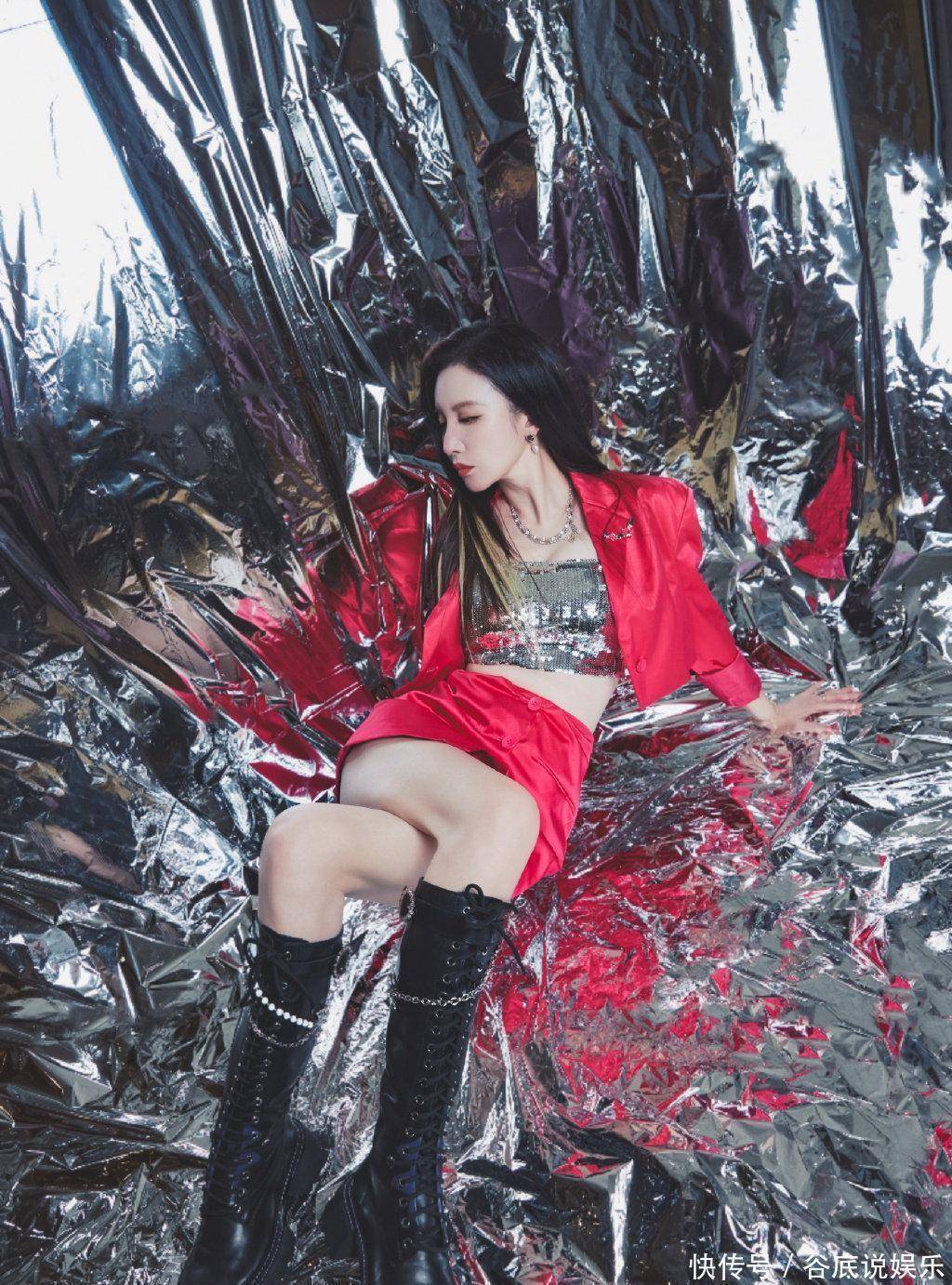 材质的混搭是这套造型的亮点之一,亮片的 “张扬闪耀” 遇上缎面的 “细腻高级”,一硬一软、一炫一雅,碰撞出奇妙的化学反应。短款西装的 “正式感” 与抹胸的 “性感风” 形成强烈反差,却在红色系的统一中达成了和谐,这种 “反差式混搭” 让她的穿搭跳出了常规套路,每一眼都能发现新的时尚惊喜。配饰的选择也贯彻了 “混搭” 理念,金属项链的朋克感、链条厚底靴的街头感,和亮片抹胸的华丽感、红缎套装的复古感交织在一起,把多种风格的元素融为一体,却又各自出彩。张萌的发色同样是混搭的一部分,黑色与金色的碰撞,让她的造型在视觉上更具冲击力,小众又吸睛。在穿搭越来越趋同的当下,张萌这套亮片抹胸 + 红缎套装的小众混搭风,简直是时尚清流,她用自己的穿搭巧思证明,只要敢混搭、会混搭,就能穿出专属的撩人风格,这种把 “性感、复古、干练、小众” 全揉进一套穿搭里的操作,把 “拿捏男人” 的时尚密码玩明白了,也让大家看到了她在穿搭上的无限可能!